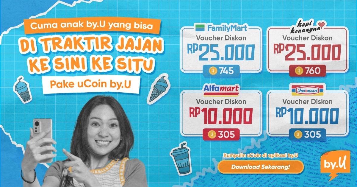 Kamu tau gak? setiap kali kamu melakukan pembelian paket dari by.U, kamu akan mendapatkan uCoin, mata uang loyalitas khusus yang bisa ditukarkan dengan berbagai voucher menarik. Yuk, simak lebih lanjut tentang program loyalitas ini dan bagaimana cara mendapatkan serta menggunakan uCoin melalui aplikasi by.U!Apa itu uCoin?uCoin adalah mata uang digital yang diberikan kepada pengguna by.U setiap kali mereka melakukan pembaruan paket otomatis. uCoin ini bisa dikumpulkan dan ditukarkan dengan berbagai voucher menarik. Ada banyak pilihan voucher yang bisa kamu pilih sesuai kebutuhan dan keinginan kamu.Keuntungan Menggunakan uCoinBerikut ini adalah tiga voucher menarik yang bisa kamu dapatkan dengan menukarkan uCoin:1. Voucher CGV Rp25.000 (670 uCoin)Bagi kamu yang suka menonton film di bioskop, voucher CGV senilai Rp25.000 ini bisa menjadi pilihan yang tepat. Dengan hanya menukarkan 670 uCoin, kamu bisa menikmati film favorit di bioskop CGV tanpa harus merogoh kocek terlalu dalam. Nonton film jadi lebih seru dan hemat!2. Voucher Traveloka Rp50.000 (1515 uCoin)Jika kamu sering bepergian atau memesan tiket pesawat dan hotel melalui Traveloka, voucher senilai Rp50.000 ini tentu sangat berguna. Dengan menukarkan 1515 uCoin, kamu bisa mengurangi biaya perjalanan kamu. Traveling jadi lebih mudah dan ekonomis!3. Voucher Google Play Rp20.000 (610 uCoin)Bagi kamu yang suka membeli aplikasi, game, atau konten digital lainnya di Google Play, voucher senilai Rp20.000 ini bisa menjadi pilihan menarik. Dengan hanya menukarkan 610 uCoin, kamu bisa menikmati berbagai konten digital favorit kamu dengan lebih hemat.[button type="link" href="https://byu.id/deeplink?type=reward" label="Menuju Halaman Reward by.U" variant="primary"] Cara Mendapatkan uCoinMendapatkan uCoin sangat mudah. Setiap kali kamu melakukan pembaruan paket otomatis dari by.U, kamu akan langsung mendapatkan uCoin. Semakin sering kamu melakukan pembaruan paket, semakin banyak uCoin yang bisa kamu kumpulkan. Jadi, pastikan aplikasi kamu selalu up to date agar kamu tidak melewatkan kesempatan untuk mendapatkan uCoin.Cara Menukarkan uCoinSetelah mengumpulkan uCoin yang cukup, kamu bisa menukarkannya dengan voucher pilihan kamu melalui aplikasi by.U. Berikut adalah langkah-langkah mudah untuk menukarkan uCoin:Buka Aplikasi by.U: Pastikan kamu sudah mengunduh dan menginstal aplikasi by.U dari Google Play Store atau Apple App Store.Masuk ke Menu U-Tainment: Di dalam aplikasi, klik Tab U-Tainment lalu turun ke bawah section uCoin / RewardsPilih Voucher: Pilih voucher yang ingin kamu tukarkan sesuai jumlah uCoin yang kamu miliki.Tukarkan uCoin: Klik tombol tukar dan voucher akan langsung masuk ke akun kamu.Aplikasi by.U: Lebih dari Sekedar Penukaran uCoinSelain bisa menukarkan uCoin dengan berbagai voucher menarik, aplikasi by.U juga menawarkan banyak fitur hiburan yang bisa dinikmati tanpa kuota. Berikut adalah beberapa fitur hiburan yang bisa kamu nikmati:1. LangitMusikDengarkan musik favorit kamu dari berbagai genre tanpa perlu khawatir kehabisan kuota. Dengan LangitMusik di aplikasi by.U, kamu bisa menikmati ribuan lagu dari berbagai artis lokal dan internasional kapan saja dan di mana saja.2. PodcastBagi kamu yang suka mendengarkan podcast, by.U menyediakan berbagai pilihan podcast menarik yang bisa kamu dengarkan tanpa batas. Mulai dari cerita horor, komedi, hingga pembahasan isu terkini, semuanya ada di sini.3. KomikNikmati berbagai judul komik seru dan menarik tanpa perlu khawatir kehabisan kuota. Dengan fitur komik di aplikasi by.U, kamu bisa membaca komik favorit kamu kapan saja dan di mana saja.4. MovieTonton berbagai film dan serial favorit tanpa kuota melalui fitur movie di aplikasi by.U. Nikmati hiburan tanpa batas langsung dari ponsel kamu.Download Aplikasi by.U Sekarang!Jangan sampai ketinggalan berbagai keuntungan dari program loyalitas by.U dan berbagai fitur hiburan menarik lainnya. Segera unduh aplikasi by.U di Google Play Store atau Apple App Store dan nikmati berbagai keuntungan yang ditawarkan. Dengan aplikasi by.U, pengalaman berkomunikasi dan hiburan kamu akan semakin seru dan menyenangkan.Nikmati segala keuntungan dari program loyalitas by.U dengan uCoin dan jadilah bagian dari jutaan pengguna setia yang sudah merasakan manfaatnya. Yuk, download aplikasi by.U sekarang dan mulai kumpulkan uCoin-mu![product type="ijoin" title="Paket by.U yang cocok untuk kamu" planId="51717"]